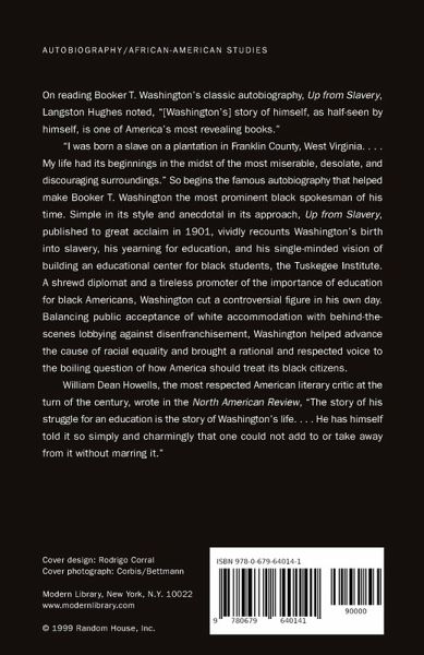 Selected by the Modern Library as one of the 100 best nonfiction books of all time In Up from Slavery, Washington recounts the story of his life-from slave to educator. The early sections deal with his upbringing as a slave and his efforts to get an education. Washington details his transition from student to teacher, and outlines his own development as an educator and founder of the Tuskegee Institute in Alabama. In the final chapters of Up From Slavery, Washington describes his career as a public speaker and civil rights activist.