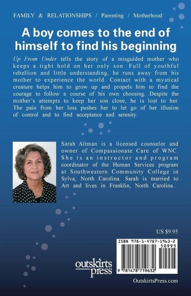 A boy comes to the end of himself to find his beginning...Up From Under tells the story of a misguided mother who keeps a tight hold on her only son. Full of youthful rebellion and little understanding, he runs away from his mother to experience the world. Contact with a mystical creature helps him to grow up and propels him to find the courage to follow a course of his own choosing. Despite the mother's attempts to keep her son close, he is lost to her. The pain from her loss pushes her to let go of her illusion of control and to find acceptance and serenity.