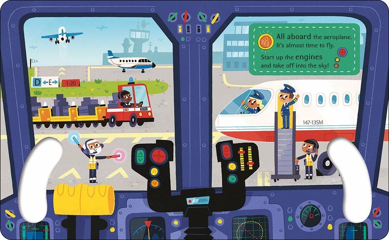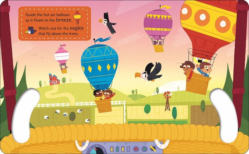 Young children can use their imaginations and go on an adventure through the skies in this novelty board book that has die-cut handles and ten different sounds!