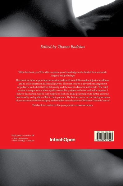 With this book, you'll be able to update your knowledge in the field of foot and ankle surgery and pathology. This book includes a sport injuries section dedicated to Achilles tendon injuries in athletes and to ankle injuries in basketball players. The next section is about the management of pediatric and adult flatfoot deformity and the recent advances in this field. The third section is unique as it is about quality control in patients with foot and ankle injuries. I believe this section will be very helpful to foot and ankle practitioners to better asses the functionality and quality of life in their patients. The last section is on the third generation of percutaneous forefoot surgery and includes a novel system of Diabetes Ground Control. This book is a useful tool in your practice armamentarium.