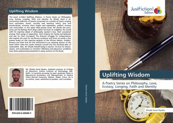 This book entitled Uplifting Wisdom: A Poetry Series on Philosophy, Love, Ecstasy, Longing, Faith and Identity, by Ghede Asrat is an enchanting collection of poems composed on a variety of topics ranging from education, books, morality and teaching ethics, love and brotherhood, common man's hopes and aspirations, soldiers' bravery and nationalism. In this aptly titled poetry book, Mr Ghede the poet, vents out his feelings from deep within his heart to enlighten the world with his inspiring ideals of philosophy, laymen's love, their occasional ecstasy, their pangs of separation, their longing for family and beloveds and also for their homeland. The Eritrean struggle for independence also inspires the poet for his literary endeavor and there are quite a few poems based on this inspiring episode of the African Nation. Soldiers' bravery and their love for the motherland is an amazing section of the book which make the reader immerse oneself into the sacrificial altar of nationalism. Also, Mr Ghede himself being a teacher, his love for books, classes, and ruminations on teachers' dilemmas and educators' problems have been passionately presented in many sections of this book.