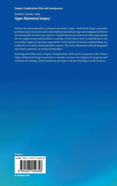 Forming part of the series, Surgery: Complications, Risks and Consequences, this volume Upper Abdominal Surgery provides a valuable resource for all general surgeons and residents in training. Other healthcare providers will also find this a useful resource.