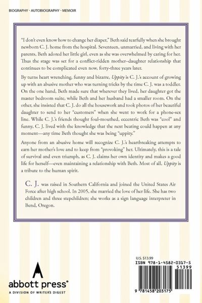 "I don't even know how to change her diaper," Suzan said tearfully when she brought newborn C. J. home from the hospital. Seventeen, unmarried, and living with her parents, Suzan adored her little girl, even as she was overwhelmed by caring for her. Thus the stage was set for a conflict-ridden mother-daughter relationship that continues to be complicated even now, forty-three years later. By turns heart wrenching, funny and bizarre, Uppity is C. J.'s account of growing up with an abusive mother who was turning tricks by the time C. J. was a toddler. On the one hand, Suzan made sure that wherever they lived, her daughter got the master bedroom suite, while Suzan and her husband had a smaller room. On the other, she insisted that C. J. do all the housework and took photos of her beautiful daughter to send to her "customers" when she went to work for a phone-sex line. While C. J.'s friends thought foul-mouthed, eccentric Suzan was "cool" and funny, C. J. lived with the knowledge that the next beating could happen at any moment-any time Suzan thought she was being "uppity." Anyone from an abusive home will recognize C. J.'s heartbreaking attempts to earn her mother's love and to keep from "provoking" her. Ultimately, this is a tale of survival and even triumph, as C. J. claims her own identity and makes a good life for herself-even maintaining a relationship with Suzan. Most of all, Uppity is a tribute to the human spirit.