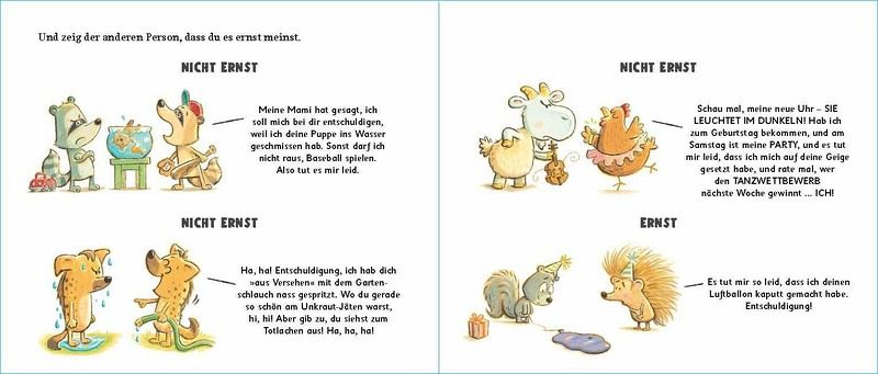 Dieses humorvolle Bilderbuch ist gespickt mit lustigen Beispielen und praktischen Tipps, die verraten, wann, warum und wie man sich entschuldigen kann.