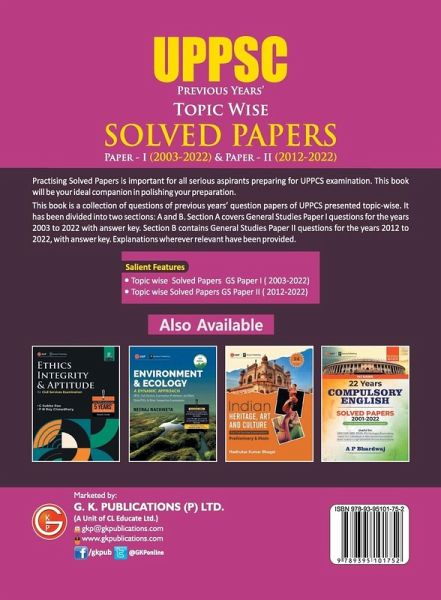 This book consists of previous years' topic-wise solved papers for UPPSC Paper I starting from the year 2003-22 & from 2012 to 22 for Paper-II. This book is the 5th and latest edition.