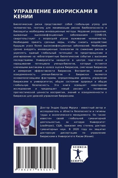 Biologicheskie riski predstawlqüt soboj global'nuü ugrozu dlq chelowechestwa, poätomu dlq minimizacii riskow biobezopasnosti i biozaschity neobhodimy innowacionnye metody. Nedawnie razrusheniq, wyzwannye wysokoinfekcionnym zabolewaniem COVID-19, swidetel'stwuüt o wozrosshej ugroze wyzhiwaniq chelowechestwa. Neobhodimo prinqt' srochnye mery, chtoby snizit' wozdejstwie buduschih ugroz bolee wysokoinfekcionnyh zabolewanij. Neobhodimo srochno wnedrqt' innowacionnye tehnologii po snizheniü riskow i ukreplqt' edinyj global'nyj potencial po predotwrascheniü i reagirowaniü na neblagopriqtnye biologicheskie sobytiq s wysokimi posledstwiqmi. Uniwersitety nahodqtsq w centre podgotowki i naraschiwaniq potenciala uchenyh-biologow, kotorye ostaütsq klüchewymi wintikami w kolese ocenki bioriskow, smqgcheniq bioriskow i izmereniq äffektiwnosti bioriskow. Vospriqtie, znaniq i oswedomlennost' uchenyh-biologow o bioriskah qwlqütsq osnowopolagaüschimi faktorami, opredelqüschimi urowen' uprawleniq bioriskami w uniwersitetah, obschee sostoqnie zdorow'q i obschuü global'nuü bezopasnost'. Jeta kniga osweschaet nowatorskie issledowaniq i predweschaet nowyj rasswet w ponimanii prognosticheskoj cennosti wospriqtiq, znanij i oswedomlennosti o bioriskah dlq urownej uprawleniq bioriskami.