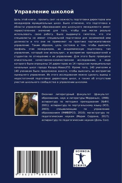 Cel' ätoj knigi - prolit' swet na wazhnost' podgotowki direktorow ili menedzherow municipal'nyh shkol. Bylo otmecheno, chto podgotowka w oblasti uprawleniq obrazowaniem ili shkol'nogo menedzhmenta imeet perwostepennoe znachenie dlq togo, chtoby oni mogli real'no ispol'zowat' swoü rabotu. Byla wydwinuta gipoteza, chto äti specialisty ne imeüt special'noj podgotowki dlq zanimaemoj imi dolzhnosti i chto oni ne primenqüt na praktike partisipatiwnoe uprawlenie. Takim obrazom, cel' sostoqla w tom, chtoby wyqsnit' profil' ätih menedzherow, ih akademicheskuü podgotowku, tip uprawleniq, kotoryj oni ispol'zuüt, i wospriqtie prepodawatelej i studentow po otnosheniü k ih uprawleniü. Dlq ätogo bylo prowedeno opisatel'noe kachestwenno-kolichestwennoe issledowanie, w hode kotorogo byli oprosheny 14 direktorow iz 14 gorodskih municipal'nyh nachal'nyh shkol goroda Kaldas-Nowas/GO. Krome togo, 140 uchitelqm i 140 uchenikam byla predlozhena anketa, chtoby wyqsnit' ih wospriqtie nyneshnego uprawleniq. Iz ätogo issledowaniq mozhno sdelat' wywod o nedostatochnoj podgotowke direktorow shkol, a takzhe ob otsutstwii uchastiq shkol'nogo soobschestwa w uprawlenii shkolami.