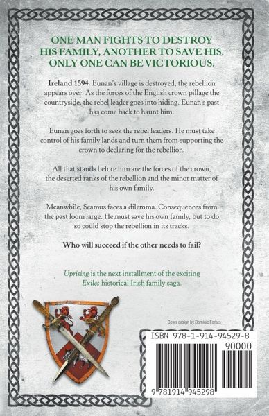 ¿ ¿ ¿ ¿ ¿ "Fully action-packed, this pulls you further into Eunan and Seamus' story; making you question who to support the whole way through," – Reedsy Discovery ¿¿¿¿ "Another action packed adventure filled with rich historical information about Ireland in the 16th century embedded in the storyline," "for anyone who loves GOT stories, well this has it all – including a bloody battle at a wedding ceremony," – The Historical Fiction Company ¿ ¿ ¿ ¿ ¿ "a real page-turner that leaves readers wanting more," "The conflict between the Crown and natives is brilliantly and elaborately written, the characters are rock-solid and relatable, and the plot is twisty as it can get," – The Book Commentary One man fights to destroy his family, another to save his. Only one can be victorious. Ireland 1594. Eunan's village is destroyed, the rebellion appears over. As the forces of the English crown pillage the countryside, the rebel leader goes into hiding. Eunan's past has come back to haunt him. Eunan goes forth to seek the rebel leaders. He must take control of his family lands and turn them from supporting the crown to declaring for the rebellion. All that stands before him are the forces of the crown, the deserted ranks of the rebellion and the minor matter of his own family. Meanwhile, Seamus faces a dilemma. Consequences from the past loom large. He must save his own family, but to do so could stop the rebellion in its tracks. Who will succeed if the other needs to fail? Uprising is the second book in the epic Irish historical fiction Exiles series. It is set against the backdrop of the Elizabethan wars in Ireland in the 1590s. A world of Irish clans, their politics and the fight for supremacy, where spies and intrigue prosper, where the embers burn for a rebellion against the English crown. If you love fast-paced action and adventure orientated historical fiction then you will love this book.