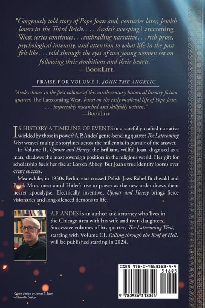 A.P. ANDES is an author and attorney who lives in the Chicago area with his wife and twin daughters. Successive volumes of his quartet, The Latecoming West, will follow, starting with Volume III, Falling through the Roof of Hell, in 2024.