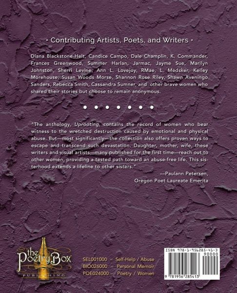 This book is for any woman who has experienced domestic or sexual abuse, for the people that love them, and those who are still seeking a way to escape from an unhealthy relationship or abusive environment. Uprooting: Leaving the Abuse Cycle is a full-color anthology of poems, visual art, and stories from survivors of domestic and sexual abuse. The book is framed around Portia Nelson's famous poem "Autobiography in Five Chapters" (from the memoir There's a Hole in My Sidewalk) and offers helpful information and resources for women looking to leave and recover from a cycle of abuse. Jade Rosina McCutcheon and Kristin Thomas are the curating editors of Uprooting: Leaving the Abuse Cycle. They are passionate about volunteering their time to help women escape dangerous environments and get the help needed to recover from the trauma of abuse. As writers and artists themselves, they know how the act of creation and sharing can be a powerful force for healing, and therefore reached out to their communities to invite poets, writers, and artists to share their work as it relates to this important topic. McCutcheon and Thomas have also done extensive research to include helpful information for leaving the cycle of abuse including how to build healthier relationships, recognize the dynamics of power & control and gaslighting, the effects of trauma on the brain and behavior, healthy exercises for healing, navigating the legal system, uplifting encouragement, and a vast list of resources for finding additional support. Contributing Artists, Poets & Writers: Diana Blackstone-Helt, Candice Campo, Dale Champlin, K. Commander, Frances Greenwood, Summer Harlan, Jarmac, Jayme Sue, Marilyn Johnston, Sherri Levine, Ann L. Lovejoy, RMae, L. Medsker, Kelley Morehouse, Susan Woods Morse, Shannon Rose Riley, Shawn Aveningo Sanders, Rebecca Smith, Cassandra Sumner, and many other brave women who shared their stories but choose to remain anonymous