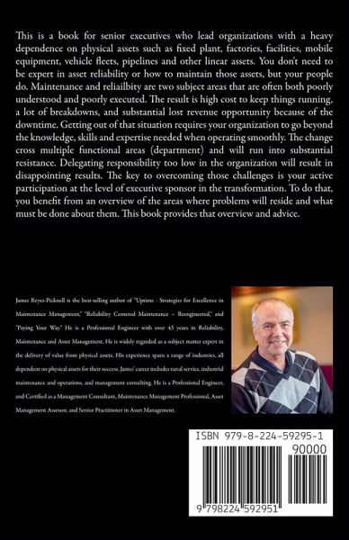 This is a book for senior executives who lead organizations with a heavy dependence on physical assets such as fixed plant, factories, facilities, mobile equipment, vehicle fleets, pipelines and other linear assets. You don't need to be expert in asset reliability or how to maintain those assets, but your people do. Maintenance and reliailbity are two subject areas that are often both poorly understood and poorly executed. The result is high cost to keep things running, a lot of breakdowns, and substantial lost revenue opportunity because of the downtime. Getting out of that situation requires your organization to go beyond the knowledge, skills and expertise needed when operating smoothly. The change cross multiple functional areas (department) and will run into substantial resistance. Delegating responsibility too low in the organization will result in disappointing results. The key to overcoming those challenges is your active participation at the level of executive sponsor in the transformation. To do that, you benefit from an overview of the areas where problems will reside and what must be done about them. This book provides that overview and advice.