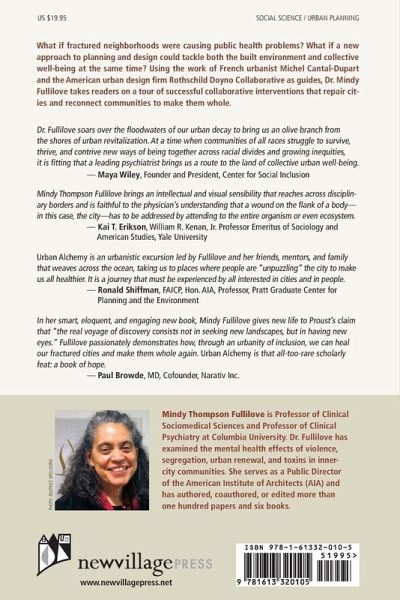 Mindy Thompson Fullilove presents ways to strengthen neighborhood connectivity and empower marginalized communities through investigation of urban segregation from a social heath perspective. "Fullilove passionately demonstrates how, through an urbanity of inclusion, we can heal our fractured cities to make them whole again. What if divided neighborhoods were causing public health problems? What if a new approach to planning and design could tackle both the built environment and collective well-being at the same time? What if cities could help each other? Dr. Mindy Thompson Fullilove, the acclaimed author of Root Shock, uses her unique perspective as a public health psychiatrist to explore and identify ways of healing social and spatial fractures simultaneously. Using the work of French urbanist Michel Cantal-Dupart and the American urban design firm Rothschild Doyno Collaborative as guides as well as urban restoration projects from France and the US as exemplary cases, Fullilove identifies nine tools that can mend our broken cities and reconnect our communities to make them whole.