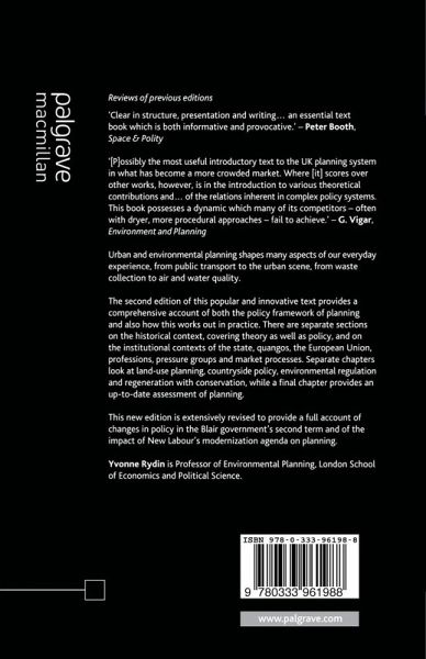 The second edition of this innovative introduction to urban and environmental planning combines comprehensive coverage of institutions and procedures with detailed analysis of the economic and political context of planning, its historical development and competing theoretical approaches. Extensively revised and updated to take account of changes in the context and content of planning into New Labour's second term, extensive use is made throughout of case studies, summary charts and exhibits to bring the subject to life.