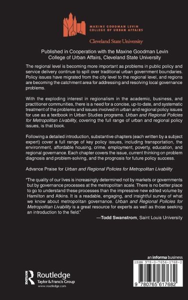 In today's public policy arena the regional level is gaining increased attention as problems in policy and service delivery continue to spill over traditional urban government boundaries. This authoritative work focuses on the growing role of regions in addressing and resolving local governance problems."Urban and Regional Policies for Metropolitan Livability" provides a concise, up-to-date, and systematic treatment of the problems and issues involved in urban and regional policy concerns. Each policy chapter is written by a respected expert in the area, and the book covers all the key policy issues that confront contemporary metropolitan areas, including transportation, the environment, affordable housing, crime, employment, poverty, education, and regional governance. Each chapter outlines an issue, which is followed by current thinking on problem diagnosis and problem solving, as well as the prognosis for future policy success.
