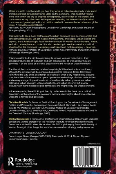 This book rethinks the city by examining its various forms of collectivity - their atmospheres, modes of exclusion and self-organization, as well as how they are governed - on the basis of a critical discussion of the notion of urban commons. The idea of the commons has received surprisingly little attention in urban theory, although the city may well be conceived as a shared resource. Urban Commons: Rethinking the City offers an attempt to reconsider what a city might be by studying how the notion of the commons opens up new understandings of urban collectivities, addressing a range of questions about urban diversity, urban governance, urban belonging, urban sexuality, urban subcultures, and urban poverty; but also by discussing in more methodological terms how one might study the urban commons. In these respects, the rethinking of the city undertaken in this book has a critical dimension, as the notion of the commons delivers new insights about how collective urban life is formed and governed.