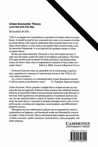 Urban Economic Theory presents a unified theory of land use and city size using the bid rent approach. Professor Fujita examines the residential location behavior of households within a microeconomic framework in the first part of the book. In the second part of the book, the basic theory is extended to include externality factors such as local public goods, crowding and congestion, racial prejudice, and differentiated producer services.