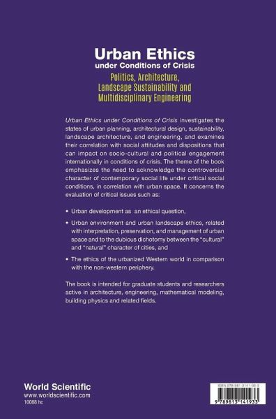 Urban Ethics under Conditions of Crisis investigates the states of urban planning, architectural design, sustainability, landscape architecture, and engineering, and examines their correlation with social attitudes and dispositions that can impact on socio-cultural and political engagement internationally in conditions of crisis. The theme of the book emphasizes the need to acknowledge the controversial character of contemporary social life under critical social conditions, in correlation with urban space. It concerns the evaluation of critical issues such as: Urban development as ethical question, Urban environment and urban landscape ethics, related with interpretation, preservation, and management of urban space and to the dubious dichotomy between the "cultural" and "natural" character of cities, and The ethics of the urbanized Western world in comparison with the non-western periphery.