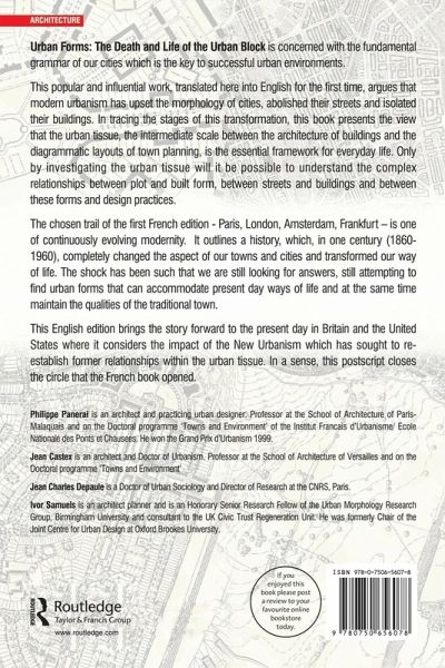 This popular and influential work, translated here into English for the first time, argues that modern urbanism has upset the morphology of cities, abolished their streets and isolated their buildings. In tracing the stages of this transformation, this book presents the view that the urban tissue, the intermediate scale between the architecture of buildings and the diagrammatic layouts of town planning, is the essential framework for everyday life. Only by investigating the urban tissue will it be possible to understand the complex relationships between plot and built form, between streets and buildings and between these forms and design practices.