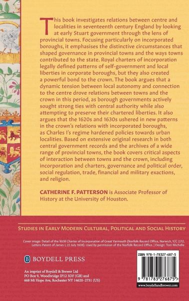 This book investigates relations between centre and localities in seventeenth century England by looking at early Stuart government through the lens of provincial towns. Focusing particularly on incorporated boroughs, it emphasises the distinctive circumstances that shaped governance in provincial towns and the ways towns contributed to the state. Royal charters of incorporation legally defined patterns of self-government and local liberties in corporate boroughs, but they also created a powerful bond to the crown. The book argues that a dynamic tension between local autonomy and connection to the centre drove relations between towns and the crown in this period, as borough governments actively sought strong ties with central authority while also attempting to preserve their chartered liberties. It also argues that the 1620s and 1630s ushered in new patterns in the crown's relations with incorporated boroughs, as Charles I's regime hardened policies towards urban localities. Based on extensive original research in both central government records and the archives of a wide range of provincial towns, the book covers critical aspects of interaction between towns and the crown, including incorporation and charters, governance and political order, social regulation, trade, financial and military exactions, and religion.
