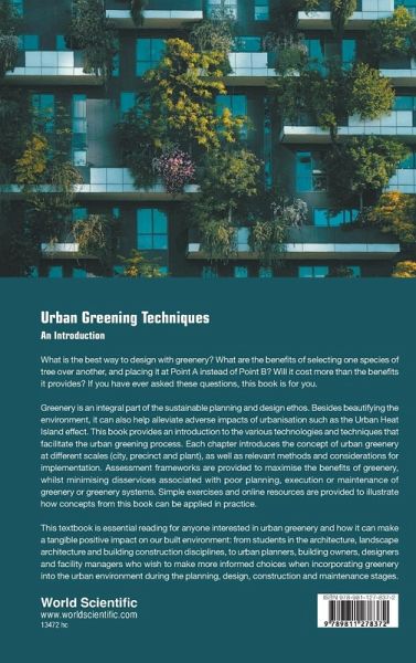What is the best way to design with greenery? What are the benefits of selecting one species of tree over another, and placing it at Point A instead of Point B? Will it cost more than the benefits it provides? If you have ever asked these questions, this book is for you. Greenery is an integral part of the sustainable planning and design ethos. Besides beautifying the environment, it can also help alleviate adverse impacts of urbanisation such as the Urban Heat Island effect. This book provides an introduction to the various technologies and techniques that facilitate the urban greening process. Each chapter introduces the concept of urban greenery at different scales (city, precinct and plant), as well as relevant methods and considerations for implementation. Assessment frameworks are provided to maximise the benefits of greenery, whilst minimising disservices associated with poor planning, execution or maintenance of greenery or greenery systems. Simple exercises and online resources are provided to illustrate how concepts from this book can be applied in practice. This textbook is essential reading for anyone interested in urban greenery and how it can make a tangible positive impact on our built environment: from students in the architecture, landscape architecture and building construction disciplines, to urban planners, building owners, designers and facility managers who wish to make more informed choices when incorporating greenery into the urban environment during the planning, design, construction and maintenance stages.