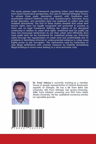 This study assesses Legal Framework regulating Urban Land Management from Good Governance perspectives, the case of Selected Ethiopian Towns. To achieve these goals, descriptive research with Qualitative and quantitative research methods were used. Questionnaires, Interview, focus group discussion, and secondary data was employed to collect data and analyzed descriptively. The find of these studies revealed that urban land tenure rights were not legally recognized and protected in practice as there was no legal framework defining the culture of the aboriginal community in relation to urban land rights. Undefined land for public use does not encourage landowners to use their urban land efficiently since most public land can be transferred for undefined private use. Enforcing rights through the regularization of urban land was unaffordable due to problems in identifying informal or undocumented evidence in urban areas highly prone to pet corruption. The mechanisms used by institutions to stop illegal settlements with coercive measures by violently demolishing illegal buildings in towns were leading to a socio-economic crisis.