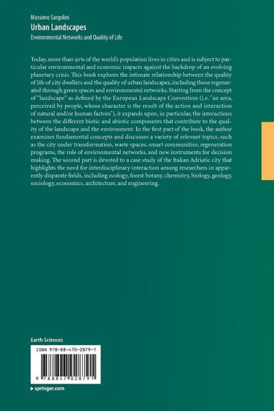 Today, more than 50% of the world's population lives in cities and is subject to particular environmental and economic impacts against the backdrop of an evolving planetary crisis. This book explores the intimate relationship between the quality of life of city dwellers and the quality of urban landscapes, including those regenerated through green spaces and environmental networks. Starting from the concept of "landscape" as defined by the European Landscape Convention (i.e. "an area, perceived by people, whose character is the result of the action and interaction of natural and/or human factors"), it expands upon, in particular, the interactions between the different biotic and abiotic components that contribute to the quality of the landscape and the environment. In the first part of the book, the author examines fundamental concepts and discusses a variety of relevant topics, such as the city under transformation, waste spaces, smart communities, regeneration programs, the role of environmental networks, and new instruments for decision making. The second part is devoted to a case study of the Italian Adriatic city that highlights the need for interdisciplinary interaction among researchers in apparently disparate fields, including ecology, forest botany, chemistry, biology, geology, sociology, economics, architecture, and engineering.