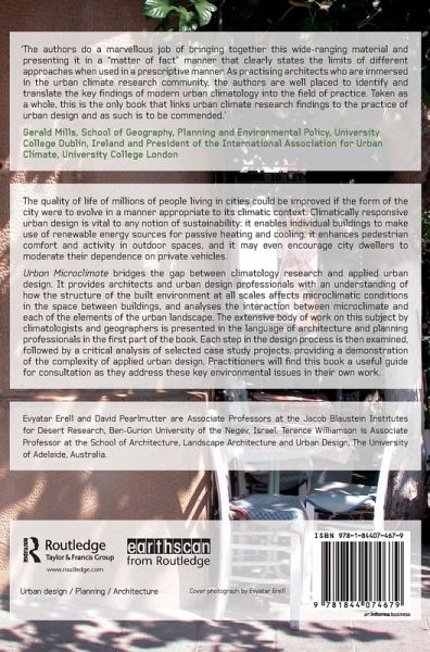 'The authors do a marvellous job of bringing together this wide-ranging material and presenting it in a 'matter-of-fact' manner that clearly states the limits of different approaches when used in a prescriptive manner. As practising architects who are immersed in the urban climate research community the authors are well placed to identify and translate the key findings of modern urban climatology into the field of practice. Taken as a whole, this is the only book that links urban climate research findings to the practice of urban design and as such is to be commended.' Gerald Mills, School of Geography, Planning & Environmental Policy, University College Dublin, Ireland and President of the International Association for Urban Climate