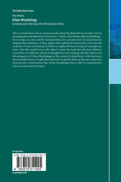 This is a book about cities or, more precisely, about the physical form of cities. It starts presenting the main elements of urban form - streets, urban blocks, plots and buildings - structuring our cities and the fundamental actors and processes of transformation shaping these elements. It then applies this analytical framework to describe the evolution of cities over history as well as to explain the functioning of contemporary cities. After the initial focus on the 'object' (cities) the book describes how different researchers and different schools of thought have been dealing with this object since the emergence of Urban Morphology, as the science of urban form, in the turning to the twentieth century. Finally, the book tries to identify what are the most important (and specific) contributions that Urban Morphology has to offer to contemporary cities, societies and economies.