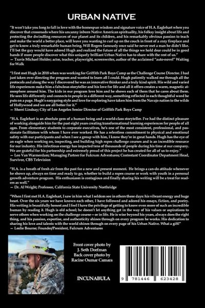 "It won't take you long to fall in love with the homespun wisdom and signature voice of H.A. Eaglehart when you discover that crossroads where his uncanny inborn Native American spirituality, his folksy insight about life and protecting the dwindling resources of our planet and its children, and his remarkably obvious passion to teach and make the world a better place, will leave you wanting to curl up on the couch in front of a cozy fireplace and get to know a truly remarkable human being. Will Rogers famously once said he never met a man he didn't like. I'll bet the guy would have adored Hugh and realized the future of all the things we hold dear could be in good hands if more people discover what this uniquely brilliant Urban Native has to share with the rest of us." - Travis Michael Holder; actor, teacher, playwright, screenwriter, author of the acclaimed "auto-novel" Waiting for Walk