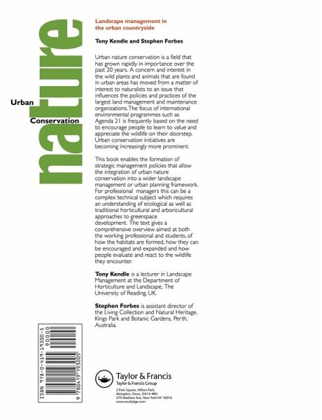 Urban nature conservation is a field that has grown rapidly in importance over the past 20 years and will continue to do so in the coming years as landscape ecology and greenspace planning become established disciplines. A widespread concern and interest in the wild plants and animal life found in urban areas now influences the policies and practices of land management organizations. This book provides a comprehensive overview of the subject. It will assist professionals in formulating strategic management policies that integrate urban nature conservation into the wider context of landscape management and urban planning.