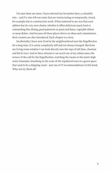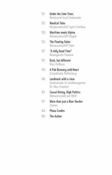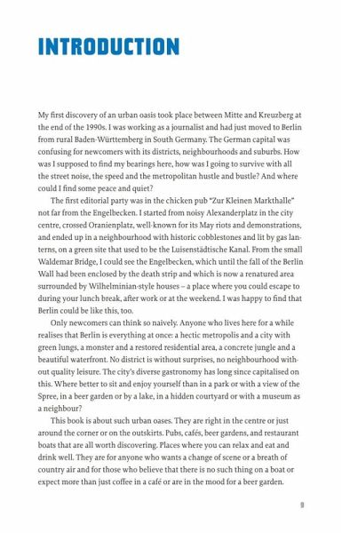 This book takes you to the most beautiful open-air spots in Berlin where you can enjoy a drink or a meal whilst soaking up historiccharm, magnificent views or the peace of nature. In hidden courtyards and gardens, in quiet parks, on the banks of lakes orrivers or even on the deck of a ship, Berlin offers a host of tranquil oases where city dwellers can take time out from the stress of everyday life. With over 200 color illustrations and plenty of tips that will inspire you to enjoy delightful hours in idyllic places.