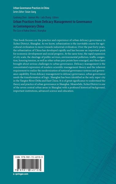 This book focuses on the practice and experience of urban delicacy governance in Xuhui District, Shanghai. As we know, urbanization is the inevitable course for agricultural civilization to move towards industrial civilization. Over the past forty years, the urbanization of China has developed rapidly and has become an important push for economic development and social progress. At the same time, the rapid expansion of city scale, the shortage of public services, environmental pollution, traffic congestion, housing tension, as well as other urban pain points have emerged, and these have brought about serious challenges to urban governance. Delicacy management is the concentrated expression of modern scientific management theory and the inherent requirement to realize the modernization of national governance systems and governance capability. From delicacy management to delicacy governance, urban governance needs the transformation of logic. Shanghai has been identified as the only super city in the Yangtze River Delta and East China. It is of great significance to understand the theory and practice of urban governance in Shanghai. Meanwhile, Xuhui District is one of the seven central urban areas in Shanghai with a profound historical background, important institutions, advanced science and education.