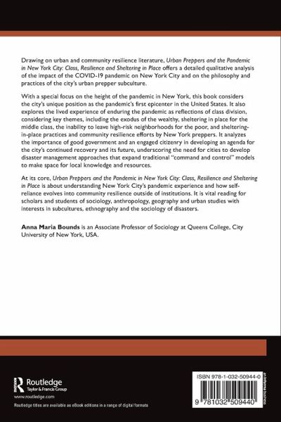 At its core, Urban Preppers and the Pandemic in New York City: Class, Resilience and Sheltering in Place is about understanding New York City's pandemic experience and how self-reliance evolves into community resilience outside of institutions. It is vital reading for scholars and students of sociology, anthropology, geography and urban studies with interests in subcultures, ethnography and the sociology of disasters.
