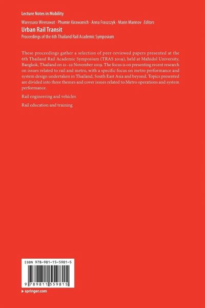 These proceedings gather a selection of peer-reviewed papers presented at the 6th Thailand Rail Academic Symposium (TRAS 2019), held at Mahidol University, Bangkok, Thailand on 21-22 November 2019. The focus is on presenting recent research on issues related to rail and metro, with a specific focus on metro performance and system design undertaken in Thailand, South East Asia and beyond. Topics presented are divided into three themes and cover topics towards sustainable transportation related to: Metro operations and system performance; Rail engineering and vehicles; Rail education and training.