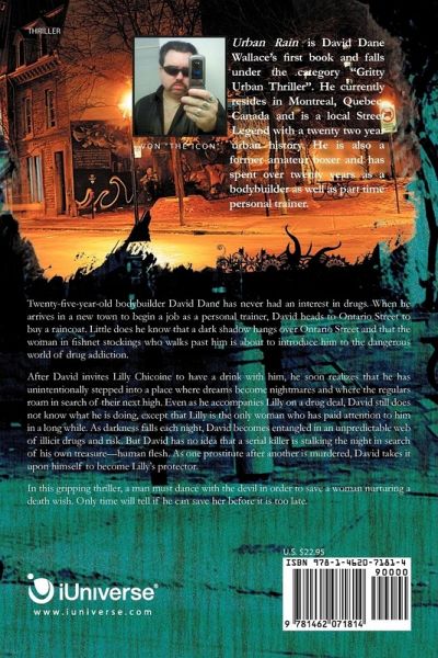 Twenty-five-year-old bodybuilder David Dane has never had an interest in drugs. When he arrives in a new town to begin a job as a personal trainer, David heads to Ontario Street to buy a raincoat. Little does he know that a dark shadow hangs over Ontario Street and that the woman in fishnet stockings who walks past him is about to introduce him to the dangerous world of drug addiction. After David invites Lilly Chicoine to have a drink with him, he soon realizes that he has unintentionally stepped into a place where dreams become nightmares and where the regulars roam in search of their next high. Even as he accompanies Lilly on a drug deal, David still does not know what he is doing, except that Lilly is the only woman who has paid attention to him in a long while. As darkness falls each night, David becomes entangled in an unpredictable web of illicit drugs and risk. But David has no idea that a serial killer is stalking the night in search of his own treasure-human flesh. As one prostitute after another is murdered, David takes it upon himself to become Lilly's protector. In this gripping thriller, a man must dance with the devil in order to save a woman nurturing a death wish. Only time will tell if he can save her before it is too late.