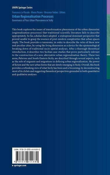 This book explores the issues of transformation phenomena of the urban dimension (regionalization processes) that traditional scientific literature fails to describe appropriately. So far, scholars have adopted a widespread dominant perspective that proved unable to grasp the essence of post-modern complexities that urban spaces imply. The book provides a taxonomy, in order to describe the rules of these new and peculiar cities, by using the living dimension as a device for the epistemological breaking down of traditional socio-spatial analyses. After a thorough theoretical introduction, it describes two Sicilian case studies that prove particularly relevant to the construction of a new, alternative urban regionalization theory. These two areas, Palermo and South-Eastern Sicily, are described through several aspects, such as the role of migrants and migrations in defining urban regionalization, the power of fiction and the new urban forms that are slowly emerging in Sicily. Overall, this book provides a refreshing view of what Sicily has been and is becoming, by deconstructing most of its clichés and suggesting theoretical perspectives grounded in both quantitative and qualitative analyses.