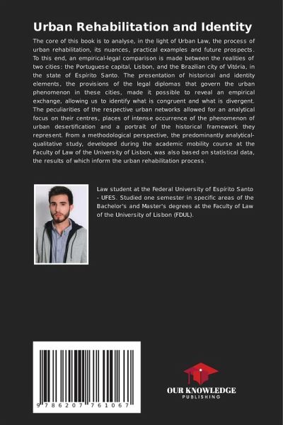 The core of this book is to analyse, in the light of Urban Law, the process of urban rehabilitation, its nuances, practical examples and future prospects. To this end, an empirical-legal comparison is made between the realities of two cities: the Portuguese capital, Lisbon, and the Brazilian city of Vitória, in the state of Espírito Santo. The presentation of historical and identity elements, the provisions of the legal diplomas that govern the urban phenomenon in these cities, made it possible to reveal an empirical exchange, allowing us to identify what is congruent and what is divergent. The peculiarities of the respective urban networks allowed for an analytical focus on their centres, places of intense occurrence of the phenomenon of urban desertification and a portrait of the historical framework they represent. From a methodological perspective, the predominantly analytical-qualitative study, developed during the academic mobility course at the Faculty of Law of the University of Lisbon, was also based on statistical data, the results of which inform the urban rehabilitation process.