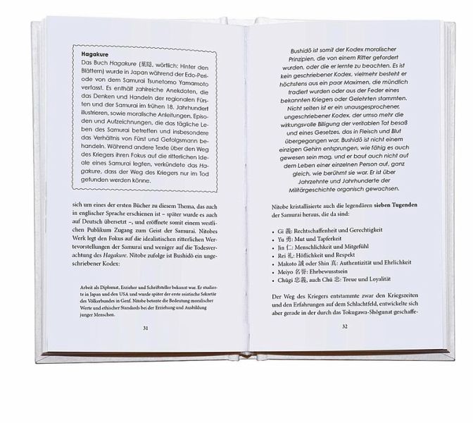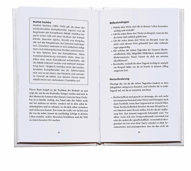 Er lehrt uns nicht nur die faszinierende Geschichte der Samurai, sondern vor allem deren Lehren und Tugenden. Diese können uns eine Antwort sein auf brennende Fragen: Wer bin ich, wenn ich alles verliere? Wie kann ich meine Lebenszeitbesser nutzen? Was tut Körper, Geist und Seele gut? Wie kann ich jeder Situation möglichst gelassen entgegentreten und schlagfertig sein? Was bedeutet für mich Selbstverwirklichung?