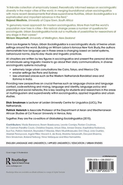 "A genuinely novel approach for modern sociolinguistics. More than half the world's population now lives in cities - this radical change poses a number of questions for sociolinguists. Urban Sociolinguistics holds out a multitude of possibilities for researchers at any stage in their career." - Miriam Meyerhoff, University of Wellington, New Zealand.