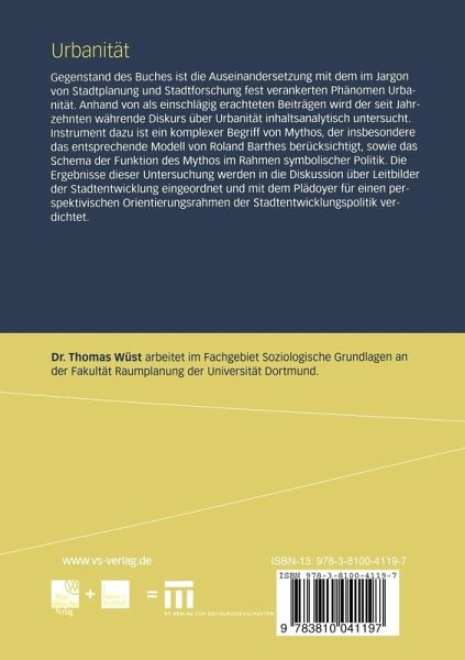 Gegenstand des Buches ist die Auseinandersetzung mit dem im Jargon von Stadtplanung und Stadtforschung fest verankerten Phänomen Urbanität. Anhand von als einschlägig erachteten Beiträgen wird der seit Jahrzehnten währende Diskurs über Urbanität inhaltsanalytisch untersucht. Instrument dazu ist ein komplexer Begriff von Mythos, der insbesondere das entsprechende Modell von Roland Barthes berücksichtigt, sowie das Schema der Funktion des Mythos im Rahmen symbolischer Politik. Die Ergebnisse dieser Untersuchung werden in die Diskussion über Leitbilder der Stadtentwicklung eingeordnet und mit dem Plädoyer für einen perspektivischen Orientierungsrahmen der Stadtentwicklungspolitik verdichtet.