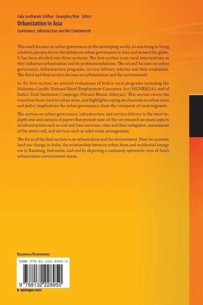 This work focuses on urban governance in the developing world, its aim being to bring a holistic perspective to the debate on urban governance in Asia and around the globe. It has been divided into three sections: The first section is on rural interventions as they influence urbanization and its problems/solutions. The second focuses on urban governance, infrastructure programs, service delivery reforms and their evaluation. The third and final section focuses on urbanization and the environment. In the first section, we present evaluations of India's rural programs including the Mahatma…mehr