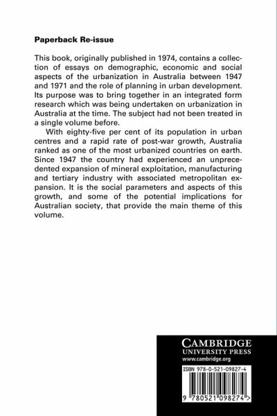 This book contains a collection of essays on demographic, economic and social aspects of the urbanization in Australia and the role of planning in urban development.