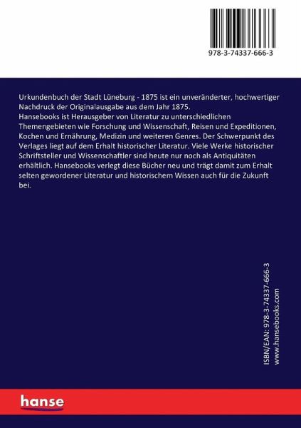 Urkundenbuch der Stadt Lüneburg - 1875 ist ein unveränderter, hochwertiger Nachdruck der Originalausgabe aus dem Jahr 1875.
