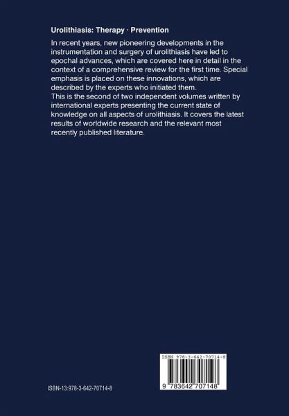 Drug Therapy of Urinary Calculi and Prevention of Recurrence.- I. Introduction.- II. General Preventive Measures.- III. Special Preventive and Therapeutic Measures.- IV. Childhood Urolithiasis.- V. Conclusion.- References.- The Treatment of Ureteric Colic and Promotion of Spontaneous Passage.- I. Introduction.- II. Pathophysiology.- III. The Treatment of Colic (Initial Analgesia).- IV. Passage of the Stone.- V. Complications of Conservative Treatment.- References.- Surgical Treatment of Renal Calculi.- I. Introduction.- II. The Classification of Kidney Stones.- III. The Indication for Surgery.- IV. Preoperative Investigations and Patient Preparation.- V. Surgical Access to the Kidney.- VI. Pyelolithotomy.- References.- Ischemia and Regional Hypothermia in Renal Stone Surgery.- I. Introduction.- II. Renal Ischemia.- III. Drug-Mediated Prolongation of Renal Ischemia Tolerance.- IV. Increasing Ischemia Tolerance by Hypothermia.- References.- Radial Nephrolithotomy Under Ultrasound and Doppler Probe Control.- I. Introduction.- II. Preoperative Investigation.- III. Apparatus.- IV. Practical Application.- V. Results.- References.- Intraoperative Pyeloscopy.- I. Introduction.- II. Rigid Nephroscopes.- III. Flexible Nephroscopes.- IV. Results.- V. Complications.- References.- Intraoperative Radiology.- I. Introduction.- II. X-Ray Equipment.- III. Aids to Intraoperative Radiology.- IV. Alternative Techniques.- References.- Percutaneous Manipulation of Renal Calculi.- I. Introduction.- II. Anatomical Considerations.- III. Percutaneous Access.- IV. Nephroscopy.- V. Mechanical Stone Extraction.- VI. Intrarenal Stone Disintegration.- VII. Percutaneous Chemolysis.- VIII. Results and Complications.- IX. The Choice of Treatment.- References.- The Instrumentation and Surgery of UretericCalculi.- I. Introduction.- II. History.- III. Significance of Symptoms.- IV. Investigations.- V. Spontaneous Passage and Size of Stone.- VI. Stone Removal.- References.- Treatment of Bladder Stones.- I. Surgical Removal of Bladder Stones.- II. Techniques of Litholapaxy.- References.- Treatment of Urethral Stones.- I. Prevalence.- II. Pathogenesis.- III. Symptomatology and Diagnosis.- IV. Treatment.- References.- Extracorporeal Shockwave Lithotripsy (ESWL) in the Treatment of Kidney and Ureter Stones.- I. Introduction.- II. Shockwave Generation and Focussing.- III. Subsequent Treatment After ESWL.- IV. Indications.- V. Conclusion.- References.- Preventive Measures.- I. The Role of Prevention in the Management of Urolithiasis.- II. Risk Factors and Persons at Risk.- III. Health Education and Behavior Patterns.- References.