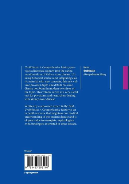 A History of Histories.- Epistemology and Lithology.- Laboring Under the Stone: A Literary Legacy of Lithiasis.- Paleolithology.- Greco-Roman Stone Disease.- Dark Ages, Dark Therapies.- Renaissance of Urolithiasis.- van Beverwijck-The Bridge from Ancient to Modern.- Enlightened Minds and Stone Disease.- Charlatans, Quacks & Joanna Stephens.- Evolution of Stone Disease.- Founding Fathers of Stone Chemistry.- Famous Stone Sufferers.- Frederik Ruysch's Fascination With Urolithiasis.- Gray's Anatomy of Stones: Henry Vandyke Carter.- The Stone Hospital & Stone Treatment.- Liesegang's Rings.- Lithotomy.- Litholapaxy- Civiale to Bigelow, von Kern controversy (1828).- Imaging the Beast- Sounding, Lithoscopes and Röntgen Rays.- Rise of "Science" in Stone Disease.- Fictitious Stones and Sir William Osler.- Early Modern Stone Disease.- Epidemiology.- Pathophysiology.- The Rarest Stone of All!.- The Largest Stone of All!.- Lithotripsy: From Rocket Science to the Clinic.- Modern Stone Science.- Equal Rights: Stone Disease and Females.- Urologist's Guide to the Galaxy.- Towards Keeping the Hippocratic Oath (Six Sigma).- Epilogue.