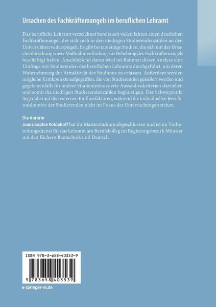 Das berufliche Lehramt verzeichnet bereits seit vielen Jahren einen deutlichen Fachkräftemangel, der sich auch in den niedrigen Studierendenzahlen an den Universitäten widerspiegelt. Es gibt bereits einige Studien, die sich mit der Ursachenforschung sowie Maßnahmenfindung zur Behebung des Fachkräftemangels beschäftigt haben. Anschließend daran wird im Rahmen dieser Analyse eine Umfrage mit Studierenden des beruflichen Lehramts durchgeführt, um deren Wahrnehmung der Attraktiviät des Studiums zu erfassen. Außerdem werden mögliche Kritikpunkte aufgegriffen, die von Studierenden geäußert werden und gegebenenfalls für andere Studieninteressierte Ausschlusskriterien darstellen und somit die niedrigen Studierendenzahlen begünstigen. Der Schwerpunkt liegt dabei auf den externen Einflussfaktoren, während die individuellen Berufswahlmotive der Studierenden nicht im Fokus der Untersuchungen stehen.