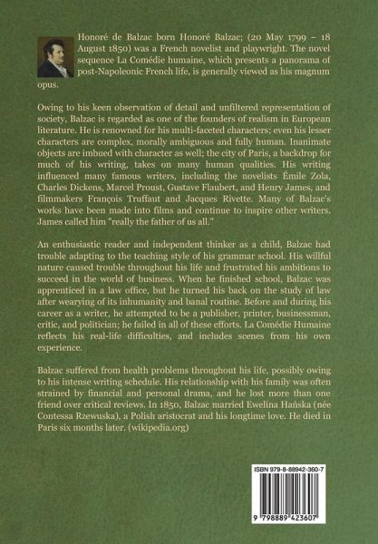 In a practical sense, Ursule Mirouët is a novel about family inheritance, money, and property. From an emotional standpoint, it is about the evil wrought by greed and envy, and about the steadfastness of innocence, friendship, and love. But Balzac also indulges in his fascination with hypnotism and mesmerism, and a pivotal plot point revolves around spiritual "ghostly apparitions." (Mark) About the author: Honoré de Balzac born Honoré Balzac; (20 May 1799 - 18 August 1850) was a French novelist and playwright. The novel sequence La Comédie humaine, which presents a panorama of post-Napoleonic French life, is generally viewed as his magnum opus. Owing to his keen observation of detail and unfiltered representation of society, Balzac is regarded as one of the founders of realism in European literature. He is renowned for his multi-faceted characters; even his lesser characters are complex, morally ambiguous and fully human. Inanimate objects are imbued with character as well; the city of Paris, a backdrop for much of his writing, takes on many human qualities. His writing influenced many famous writers, including the novelists Émile Zola, Charles Dickens, Marcel Proust, Gustave Flaubert, and Henry James, and filmmakers François Truffaut and Jacques Rivette. Many of Balzac's works have been made into films and continue to inspire other writers. James called him "really the father of us all." An enthusiastic reader and independent thinker as a child, Balzac had trouble adapting to the teaching style of his grammar school. His willful nature caused trouble throughout his life and frustrated his ambitions to succeed in the world of business. When he finished school, Balzac was apprenticed in a law office, but he turned his back on the study of law after wearying of its inhumanity and banal routine. Before and during his career as a writer, he attempted to be a publisher, printer, businessman, critic, and politician; he failed in all of these efforts. La Comédie Humaine reflects his real-life difficulties, and includes scenes from his own experience. Balzac suffered from health problems throughout his life, possibly owing to his intense writing schedule. His relationship with his family was often strained by financial and personal drama, and he lost more than one friend over critical reviews. In 1850, Balzac married Ewelina Hańska (née Contessa Rzewuska), a Polish aristocrat and his longtime love. He died in Paris six months later. (wikipedia.org)