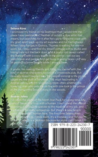 Bears are supposed to live in the woods. Just not the kind who sends you to the moon. Selena Aires I promised my friend in his final days that I would find the place I was destined for. Neither of us had a clue what that meant, but searching for it after he's gone helps me cope with my grief. I pack up my art supplies and hit the highway. When I stop for gas in Quincy, California, Thomas is waiting for me-in spirit. So, I stay and find my dream cottage with a studio, hiking trails out the back door, and a pioneer bar called the Starlight with a cozy booth in the corner. I set out my sketchbook and pencils and get busy drawing faces-my way of getting to know people while I enjoy a beer. It works. I'm making friends and filling my journal with a diverse cast of characters typical of a crossroads pub. However, diversity doesn't explain why the people coming to life on my pages resemble the stuff of fairytales. The most fascinating of them is Andras Johns, and I find myself wondering whether the towering man who lights me on fire with a single glance is the prince in the story or the beast lurking in the woods. Andras Johns I've been the alpha of the North Star Pack long enough to know better. My policy? Never mix it up with a human and risk exposing a vulnerable species to the hazards of my world. But there's a new face in town. A beautiful, human face. What do I do the first time Selena Aires gives me her smile? I smile back. It's a mistake-and I know I'm done for, which is a problem because an alpha can't break his own rules. And those hazards I mentioned? They're stacking up. The tempting Ms. Aires couldn't be more off-limits. If only she didn't have her own ideas about that. Enjoy a paranormal romance filled with heart, featuring a towering, smokin' hot cinnamon roll hero and a petite, kickass heroine as they merge their two worlds within the cozy confines of a California mountain town. This is the beginning of a three-part adventure and not a standalone novel. The thrills, surprises, and action ramp up in Drago Incendium, Book Two in The Starlight Chronicles. Low to medium open-door spice and adult language.