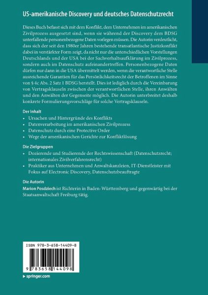Dieses Buch befasst sich mit dem Konflikt, dem Unternehmen im amerikanischen Zivilprozess ausgesetzt sind, wenn sie während der Discovery dem BDSG unterfallende personenbezogene Daten vorlegen müssen. Die Autorin verdeutlicht, dass sich der seit den 1980er Jahren bestehende transatlantische Justizkonflikt dabei in verstärkter Form zeigt, da nicht nur die unterschiedlichen Vorstellungen Deutschlands und der USA bei der Sachverhaltsaufklärung im Zivilprozess, sondern auch im Datenschutz aufeinandertreffen. Personenbezogene Daten dürfen nur dann in die USA übermittelt werden, wenn die verantwortliche Stelle ausreichende Garantien für das Persönlichkeitsrecht der Betroffenen im Sinne von Paragraph 4c Abs. 2 Satz 1 BDSG herstellt. Dies ist lediglich durch die Vereinbarung von Vertragsklauseln zwischen der verantwortlichen Stelle, ihren Anwälten und den Anwälten der Gegenseite möglich. Die Autorin unterbreitet deshalb konkrete Formulierungsvorschläge für solche Vertragsklauseln.