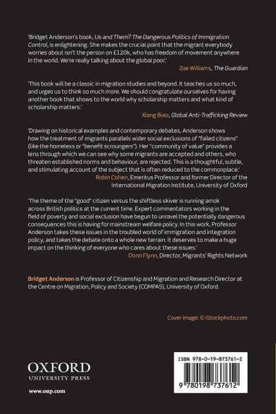 Us and Them? explores the distinction between migrant and citizen through using the concept of 'the community of value'. The challenges of migration go to the heart of equality, rights, freedom, and membership. These are not only matters for migrants but go to the heart of citizens' politics.
